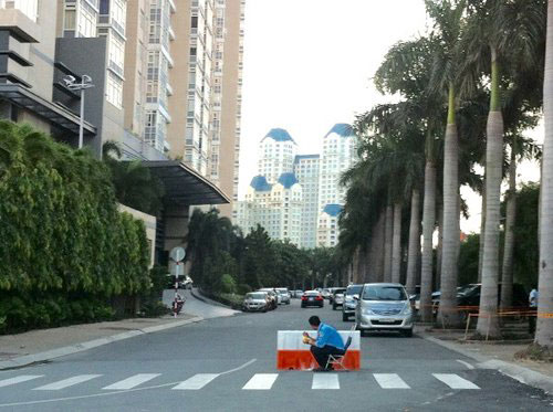 Vỉa hè chung cư Saigon Pearl bị biến thành chỗ đậu xe
